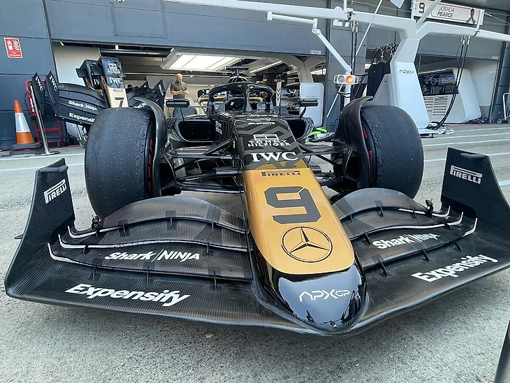 Питт сядет за руль машины с мотором «Формулы-2», созданной «Мерседесом». Фото из паддока показывают, что болид напоминает младшие «формулы», однако антикрылья сродни элементам, которые используются в «Ф-1».