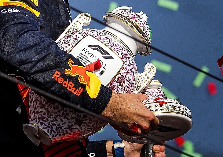 В результате удара ваза, врученная Ферстаппену, свалилась с верхней ступеньки подиума и разбилась.