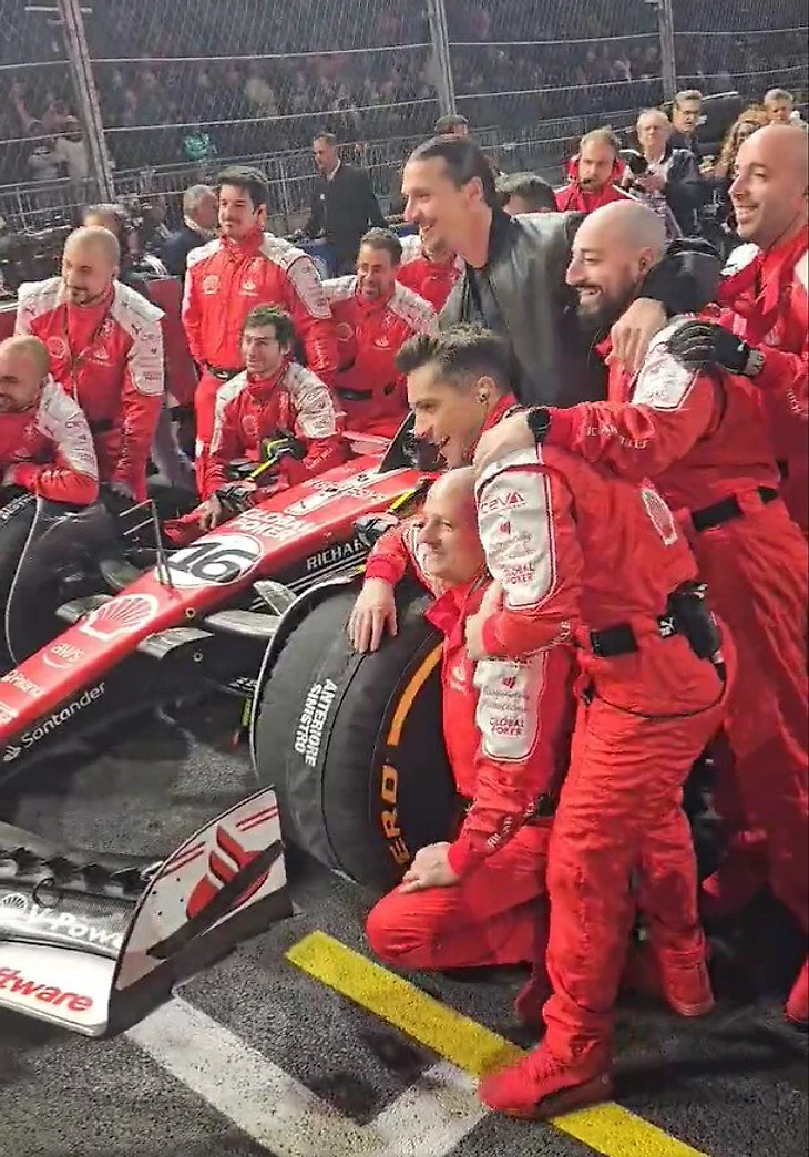 Экс-нападающий «Милана», «Барселоны» и «Манчестер Юнайтед» также выложил короткое видео, где он позирует вместе с сотрудниками Скудерии рядом с болидом Шарля Леклера.