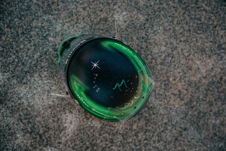 Расцветка на сезон-2024 отсылает к северному сиянию, объяснил Валттери. Пилот также предложил фанатам назвать все созвездия, обозначенные на шлеме.
