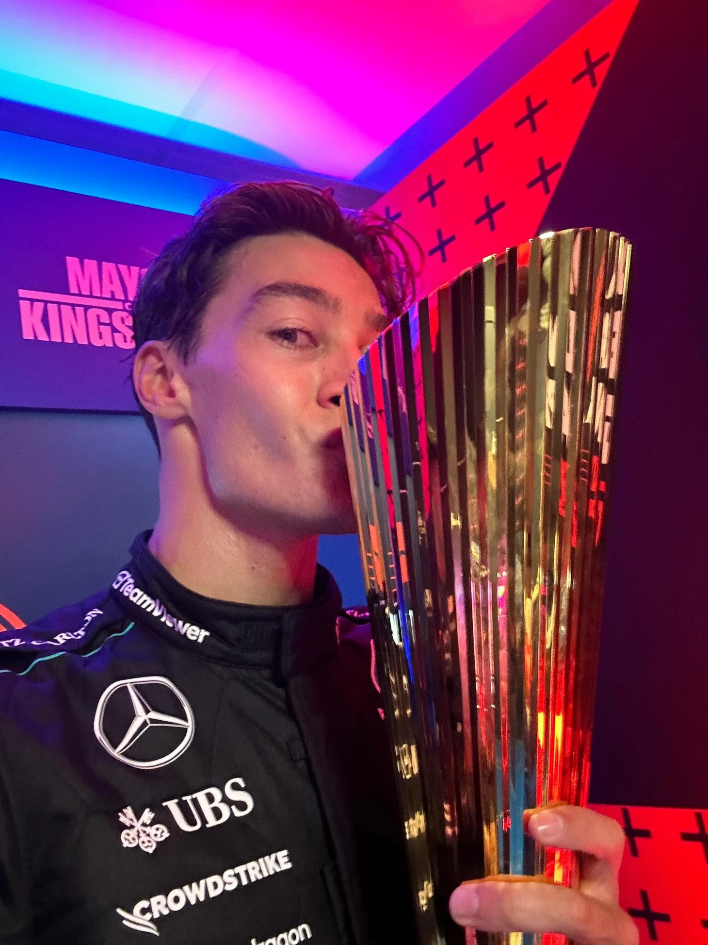 • Расселл выложил фото с кубком: «С шестого места на первое – что за невероятное чувство! Риск оправдался»