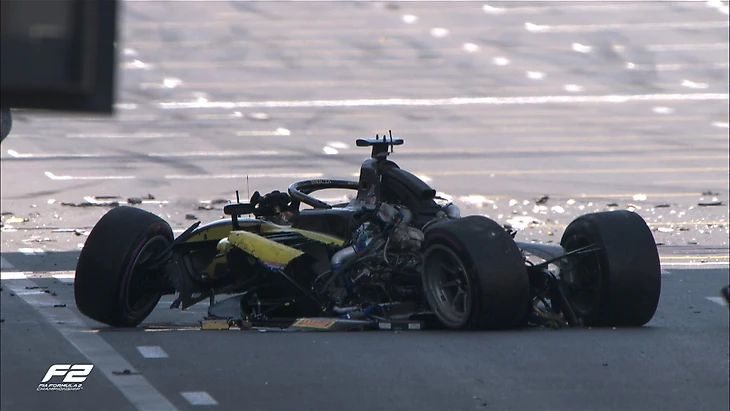 Заезд был прерван красными флагами после грандиозной аварии на старте: Пепе Марти («Кампос») и Оливер Гете («МП Моторспорт») врезались в Куша Маини – гонщик «Инвикты» не сорвался с места из-за технических проблем. Все три спортсмена сошли, но не пострадали.