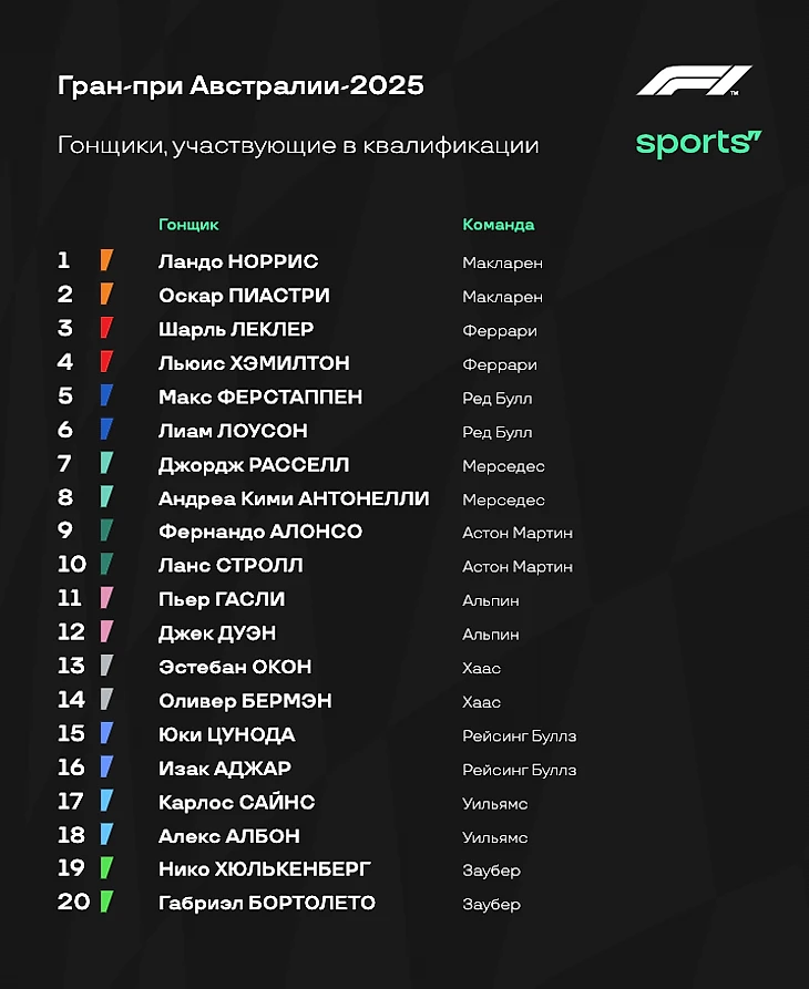 Гран-при Австралии-2025. Стартовала первая официальная тренировка в «Формуле-1»