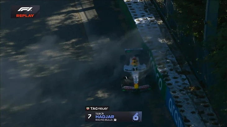 Аджар вызвал красные флаги, застряв в гравии после столкновения с барьерами в практике