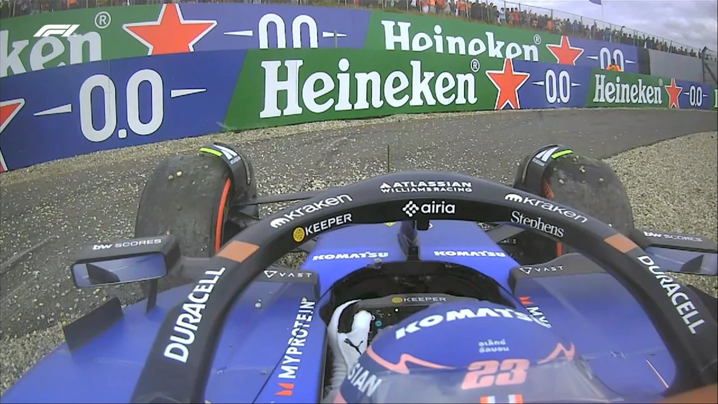 Пилот «Уильямса» Алекс Албон вылетел с трассы и дошел до контакта с барьерами во время второй практики перед Гран-при Нидерландов.