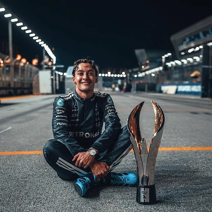 Пилот «Мерседеса» Джордж Расселл одержал победу на Гран-при Сингапура, после чего выложил в соцсети следующее фото.