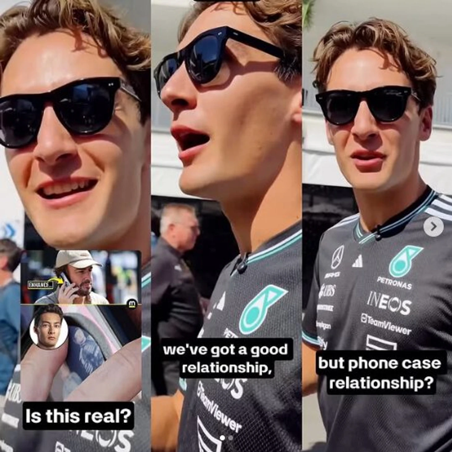 Перед началом гоночного уик-энда в Мехико болельщики, изучая соцсети Фернандо Алонсо, заметили, что на фотографии, выложенной Алонсо, на обратной стороне телефона испанца в момент разговора высветилась фотография, на которой рядом с Фернандо присутствует Джордж Расселл.