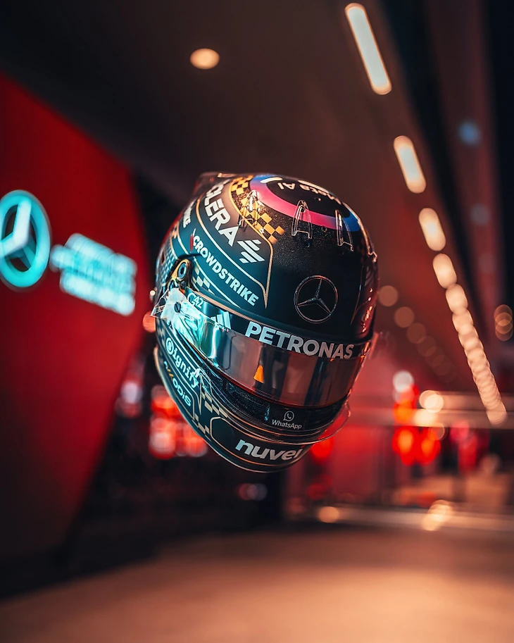 Пилот «Мерседеса» Джордж Расселл продемонстрировал специальный шлем, в котором проведет уик-энда в Лас-Вегасе