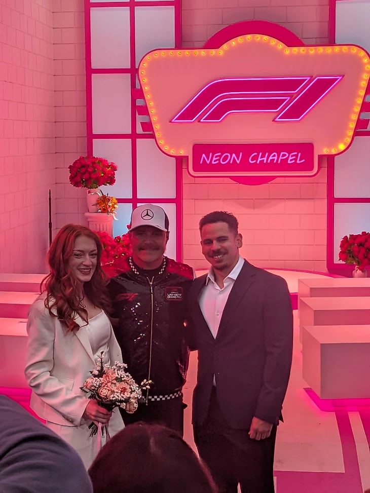 Резервный пилот «Мерседеса» Валттери Боттас провел церемонию для фанатов в специальной свадебной часовне на Гран-при Лас-Вегаса.