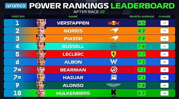 В общем зачете рейтинга Ферстаппен укрепил свое лидерство, опережая Норриса и Пиастри.