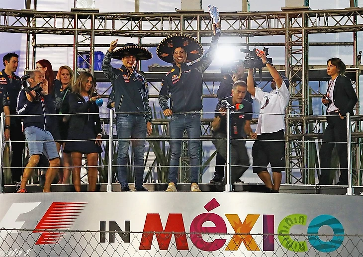 Однако через пару часов Себ также наказали – он получил 10 штрафных секунд и переместился в протоколе на пятое место. Ферстаппен, по ходу гонки не желавший становиться четвертым, все-таки занял именно эту позицию, а третье место досталось Даниэлю Риккардо. Про последнего пошутили, что на подиум он не вышел только по одной причине: никто не хотел, чтобы австралиец вновь угостил всех вокруг шампанским из гоночной обуви.