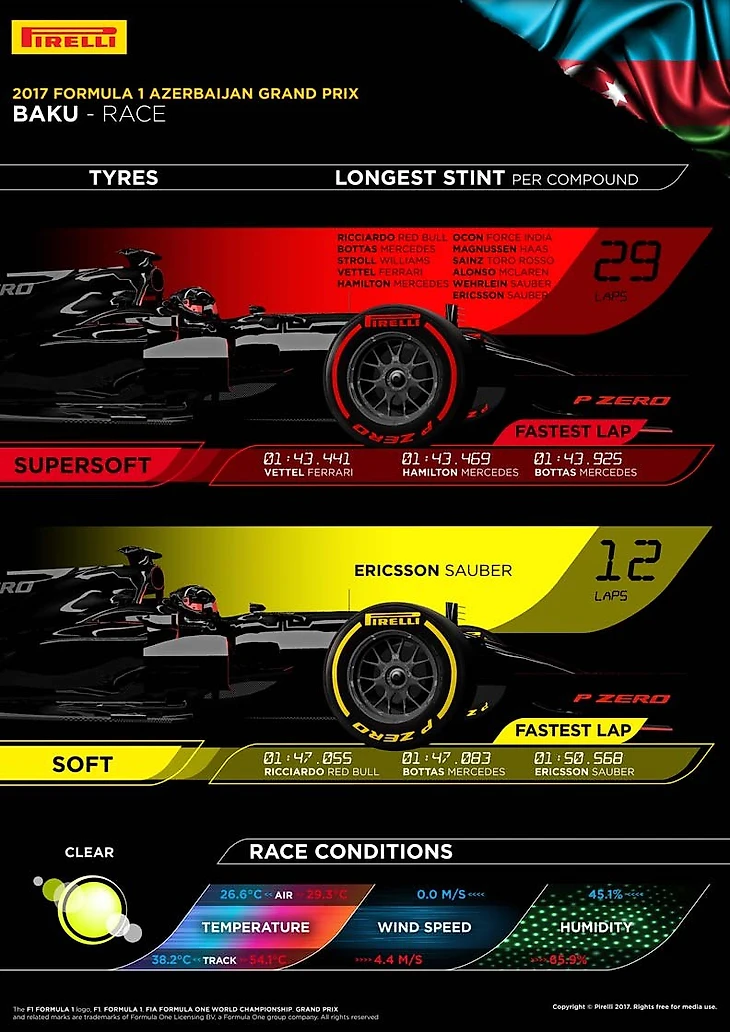 ГП Азербайджана первая в этом году гонка, в которой оба пилота Макларен увидели клетчатый флаг – Стоффель Вандорн финишировал 12 из 14 пилотов, закончивших гонку.