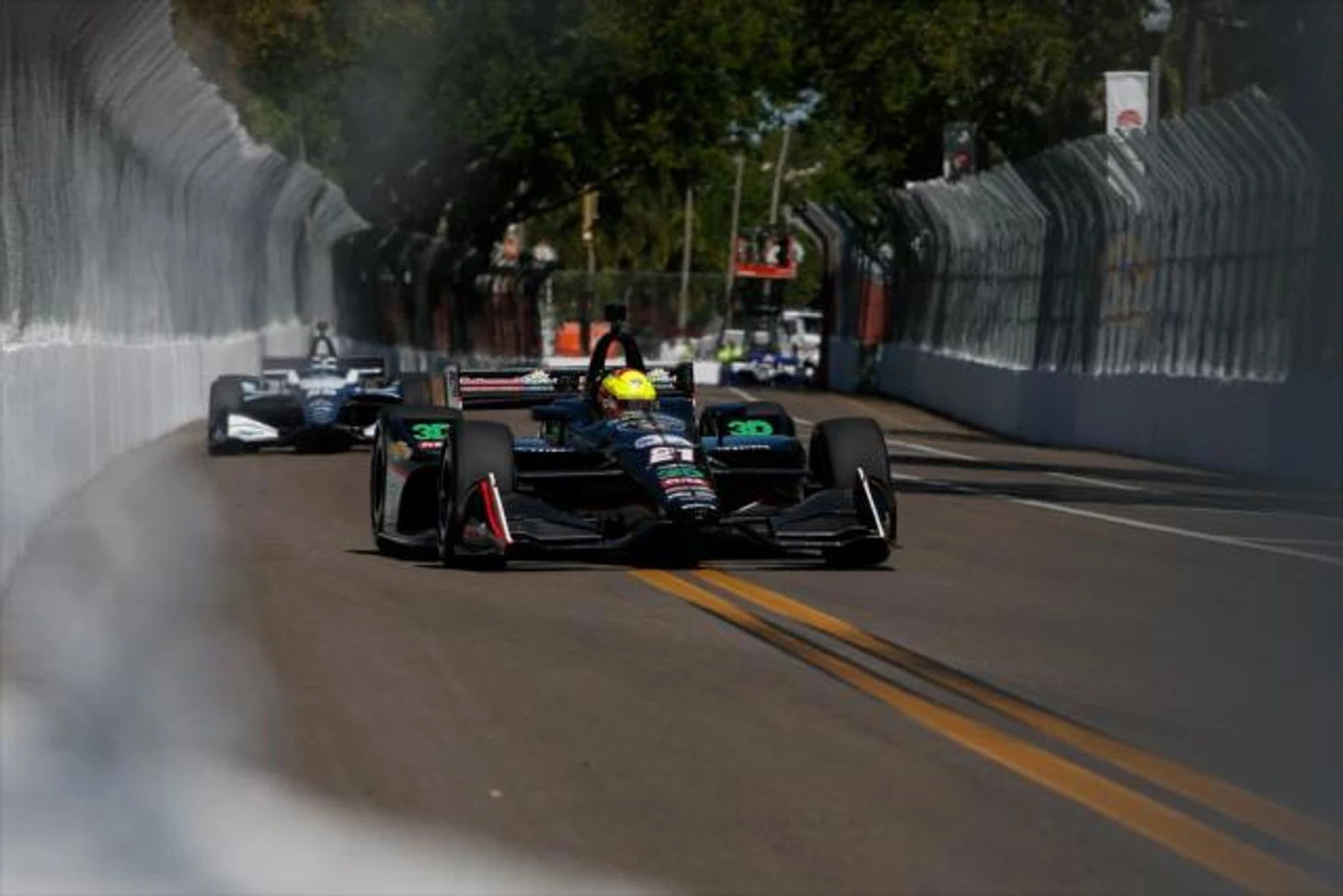 Третья тренировочная сессия закончилась не клетчатым флагом, а красным. Всё тот же Кинг, который за полторы минуты до конца, шел на улучшение своего времени (а возможно, что и позиции), в последнем повороте вылетел в шинный барьер. Его индикар визуально почти не пострадал, но почему-то вспоминается прошлогодняя история Себастьяна Бурдэ...