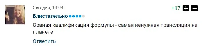 Согласен что формула подкачивает .Этот регламент езда друг за другом ,но ...будьте людьми.Есть те кому интересна ф1.
