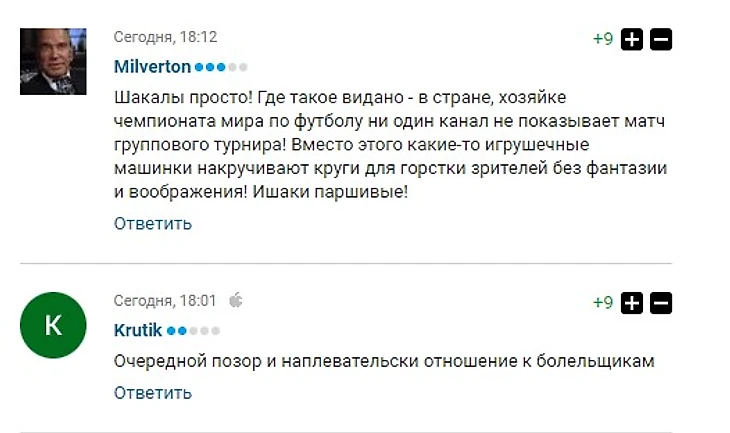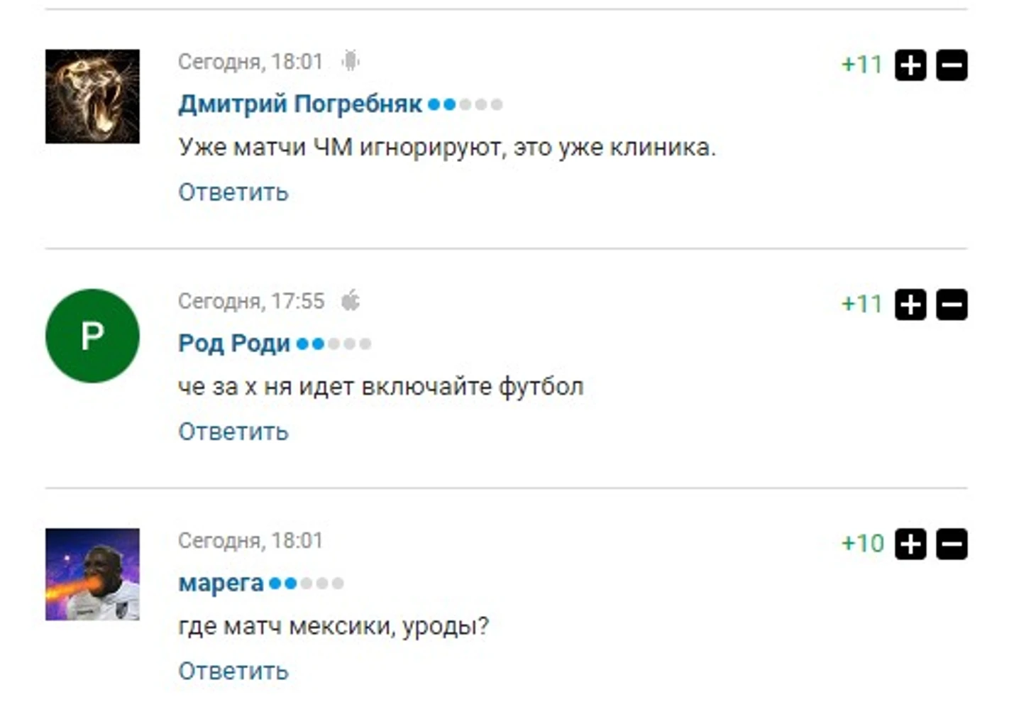 Я выключил после второго гола .Обычный футбол ,в апл каждый тур такой .Но это же чм .Вау групповой этап .И хотят чтоб их уважали . Впрочем любая футбольная ветка место срача .
