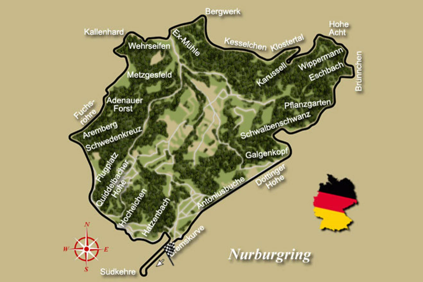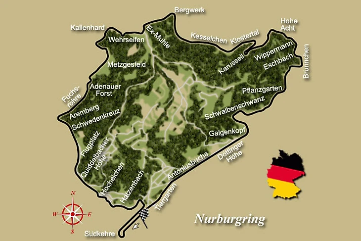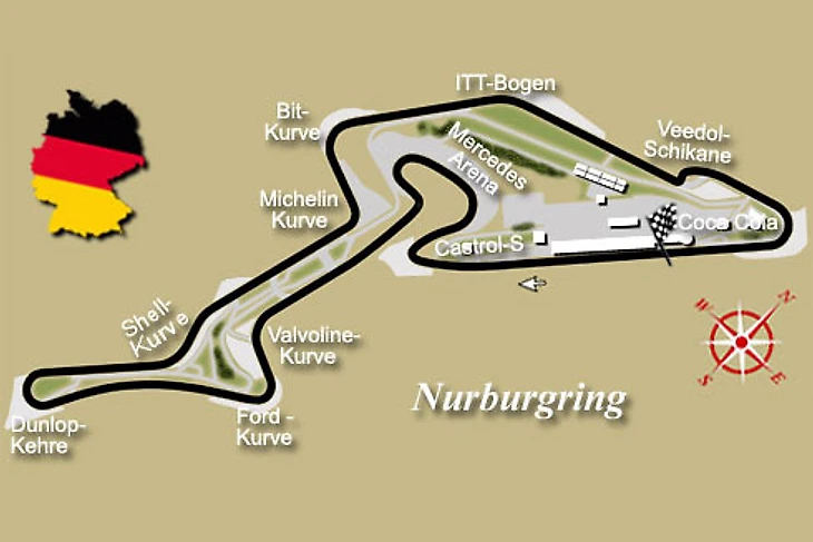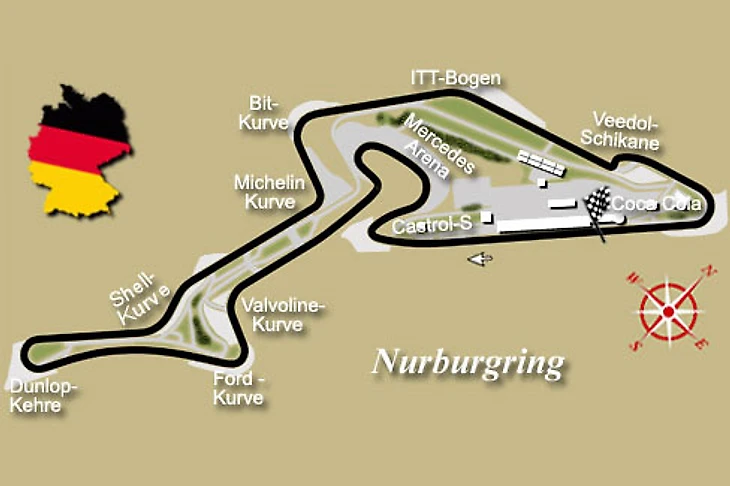 Нюрбургринг имеет очень древние корни. Гигантская трасса была построена в рамках правительственной программы обеспечения занятости вокруг деревни Нюрбург (в Эйфелевых горах), а длина ее составляла 22 с лишним километра. Первая гонка на этой старой трассе состоялась в 1927 году, причем тогда она официально имела 174 поворота и отдельный более короткий южный участок.