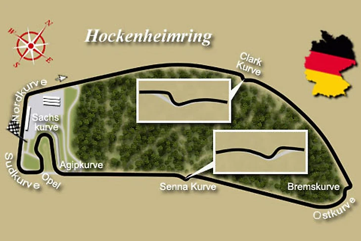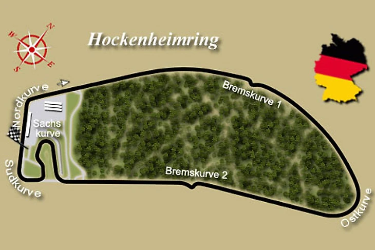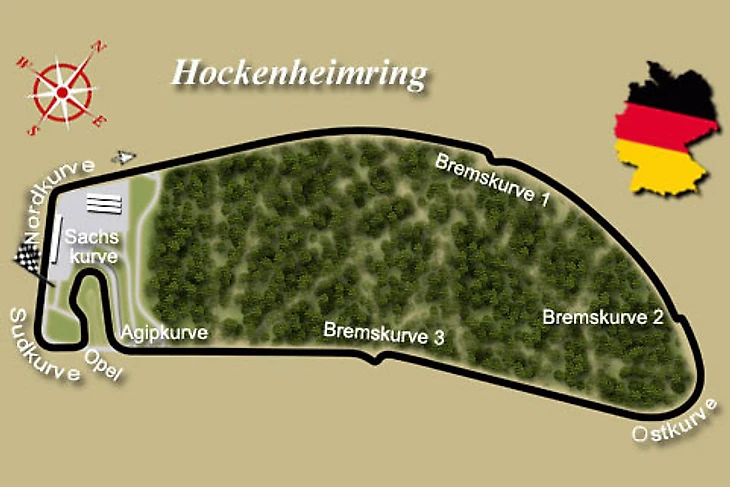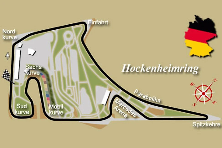 Трасса осталась быстрой (хотя и потеряла славу одной из самых быстрых в чемпионате) – средние скорости здесь переваливают за 220 км/час. Она по-прежнему требует особых настроек, которые позволят справиться с низко- и среднескоростными поворотами и высокоскоростными участками. Имеется пара мест с хорошими возможностями для обгона. Покрытие гоночного полотна обладает отличными сцепными свойствами. Если учесть, что летом в Южной Германии как правило достаточно жарко, повышенный износ резины и особые требования к системе охлаждения тормозов вполне объяснимы.