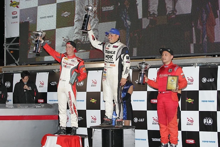 Почти все заезды ТОП-16 были унылы. Однако к ТОП-4 асфальт подсох и полуфинальные заезды уже смотрелись куда более интересно и весело. До финала добрались Гоча и Ив Майер. И Майер, чёртов везунчик в целом был неплох, но как говорится, везёт сильнейшим, а значит он достоин был этого финала. Как и ожидалось, на уже подсохжей трассе Гоча выглядел увереннее соперника и в своём стиле, спокойно, без нервяка передрифтил оппонента. Третье место досталось тайскому пилоту Шанаптону Кердпиаму, который, в свою очередь в заезде за третье место победил Наоту Суенагу.