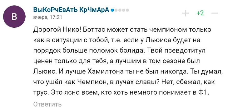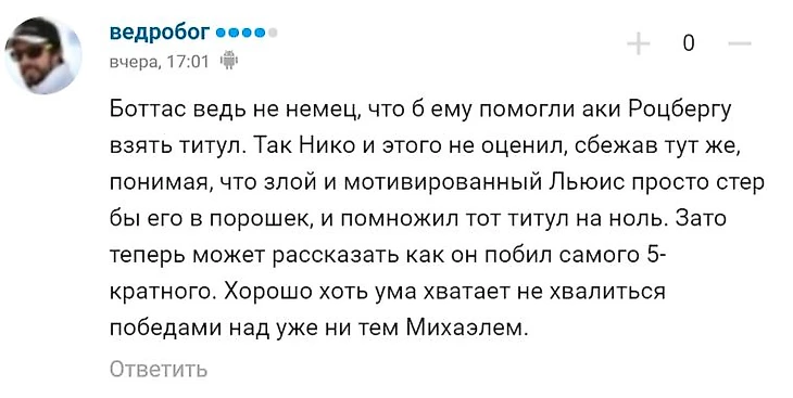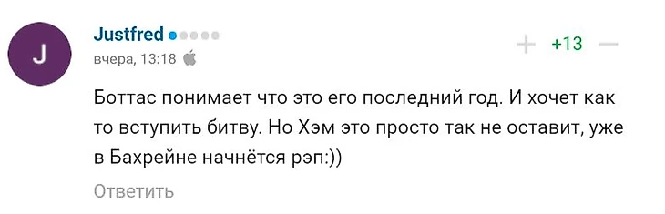 «Я правда думаю, что Боттас может стать чемпионом. В этом году Валттери перешел в боевой режим. В «Формуле-1» не стоит недооценивать фактор психологии и настроя. Это то, что мы видели в прошлом году на примере Себастьяна Феттеля.