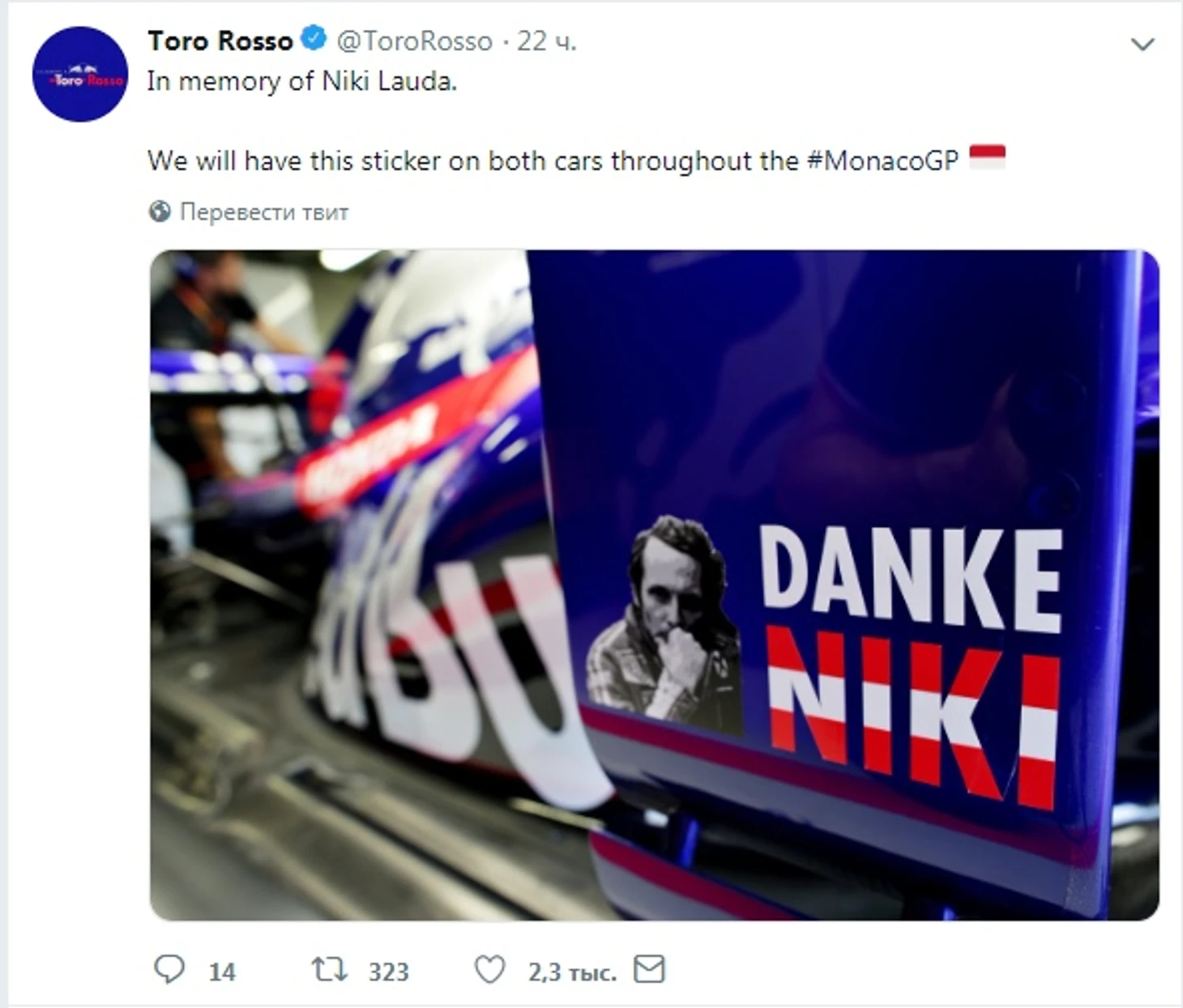 «Торо Россо» изобразила на рассекателе потрет австрийца с надписью «Спасибо, Ники».