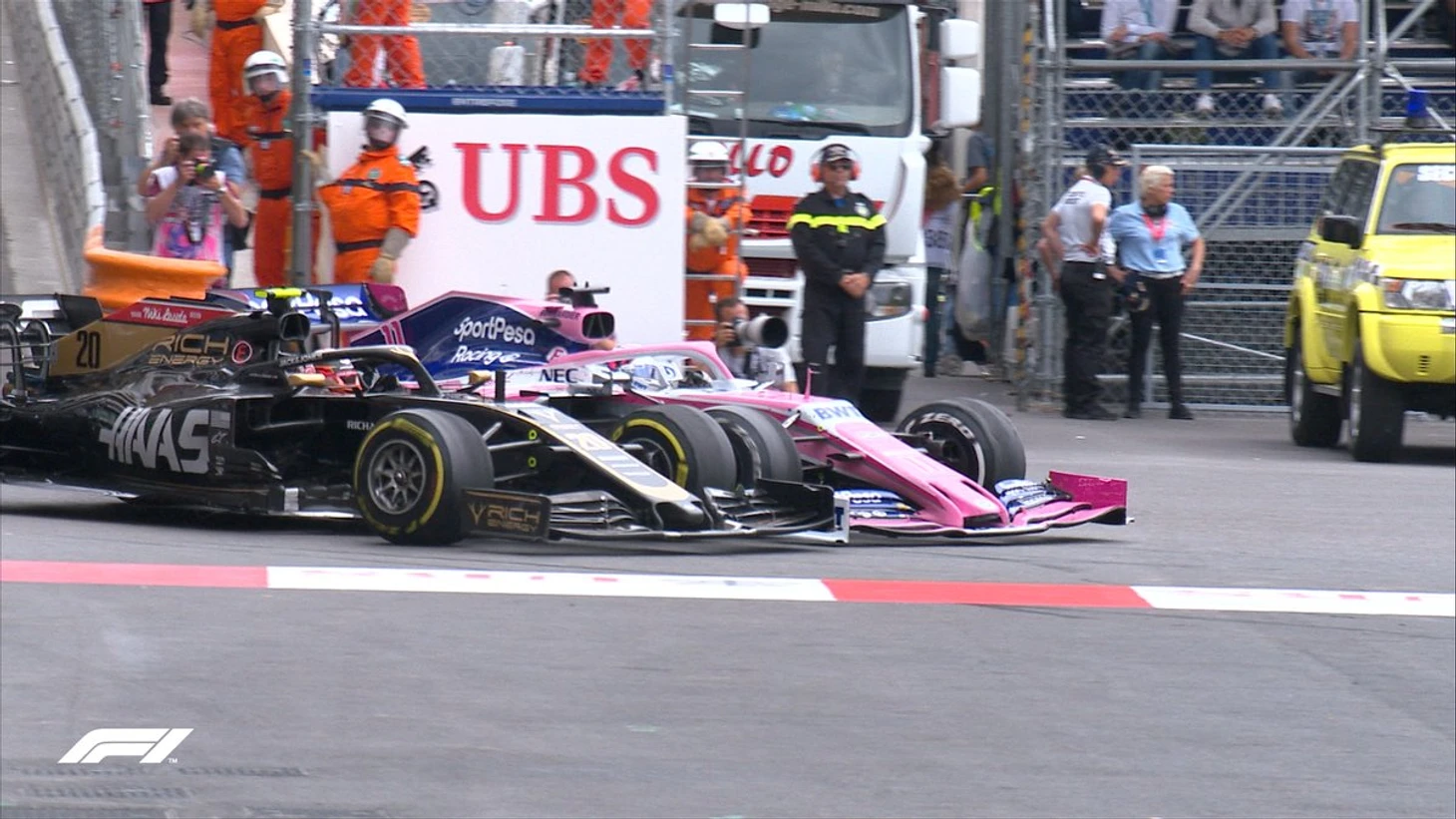 Этап в Монако стал очередным доказательством того, что автомобиль у Рэйсинг Поинт может позволять лишь на скоростных трассах бороться таланту Серхио Переса за очки и попадание в финал квалификации. Уже не в первый раз за 2019-й розовые машины - девятые по скорости в пелетоне, опережая только Уильямсы. Полагаю, что в действиях Переса во время борьбы с Магнуссеном не было ничего криминального, а вот датчанин оборонялся, как говорят в футболе, на грани фола. Лэнс Стролл тоже, полагаю, мог «заслужить» штрафную санкцию за свои не слишком аккуратные маневры близ машины Альфа Ромео.