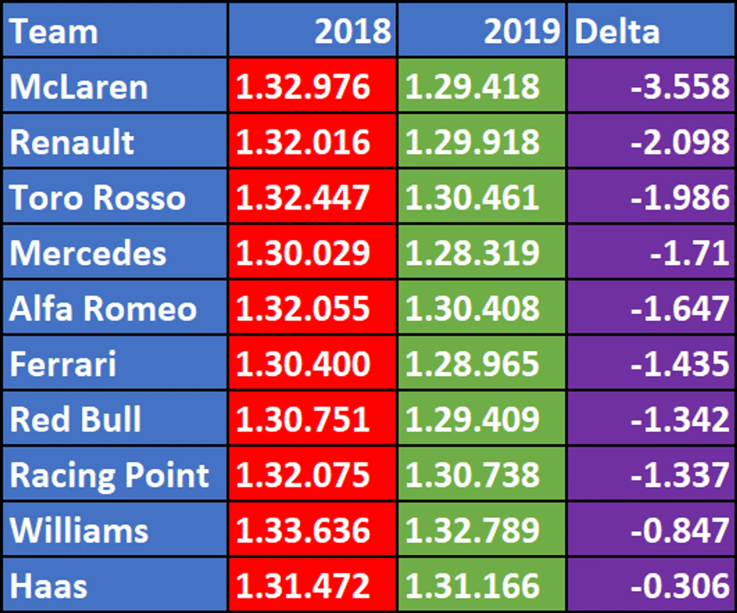 Более того, команда из Уокинга стала самой прогрессирующей в 2019-м — отыграла у себя же из 2018-го 3,5 секунды.
