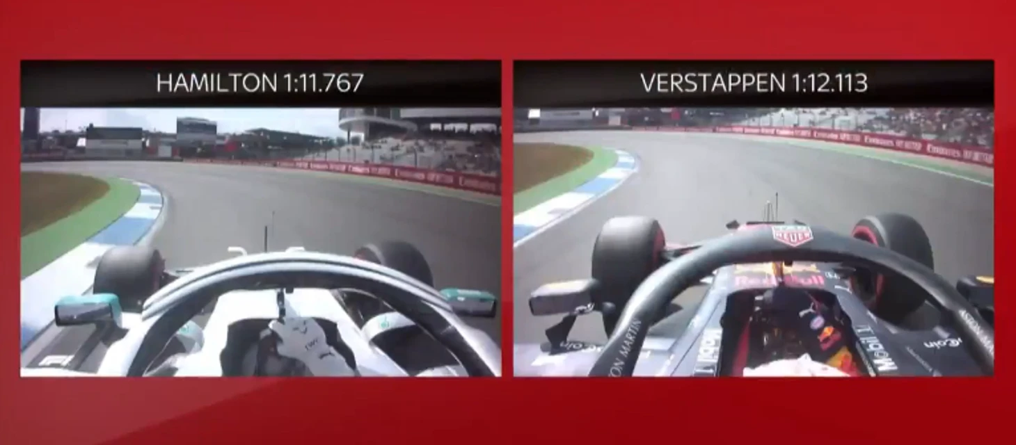 Кстати, если сравнить пилотаж Льюиса и Макса, станет очевидным, что англичанин не везде смог выложиться на полную и потому мог реально потерять даже место на первом ряду стартовой решетки. К примеру, в первом повороте Ферстаппен использовал намного больше поребрика.