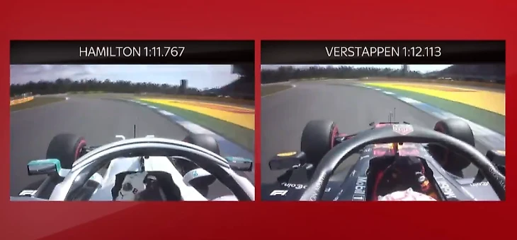 Истинное мастерство Льюиса проявилось в следующем повороте: он повернул намного раньше Ферстаппена и четко угодил на апекс. Здесь Хэмилтон точно исправил все ошибки, допущенные в первом секторе.