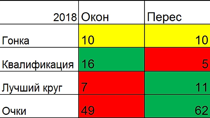 В следующем сезоне был очевидный прогресс, что видно из аналогичной таблицы ниже. Эстебан полностью переиграл Переса в квалификациях и бился наравне с мексиканцем в гонках. Но тут важно упомянуть один важный момент: сходы. За весь год Перес выбывал из гонки лишь дважды из-за технических проблем. Окону же не везло больше: он сошел пять раз. Как итог, отсюда потеря очков и ухудшение результата.