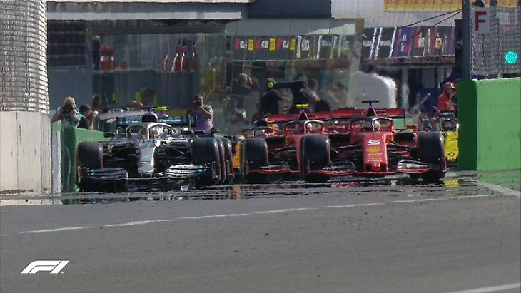 Стюарды, конечно, вызвали немца на слушания по поводу его срезки: если у Феттеля дым из-под колеса заметно было невооруженным глазом, то Хюлькенберг просто поехал по прямой без попытки преодолеть трудности. Вот только вслед за ним приглашение к судьям получили остальные восемь пилотов.