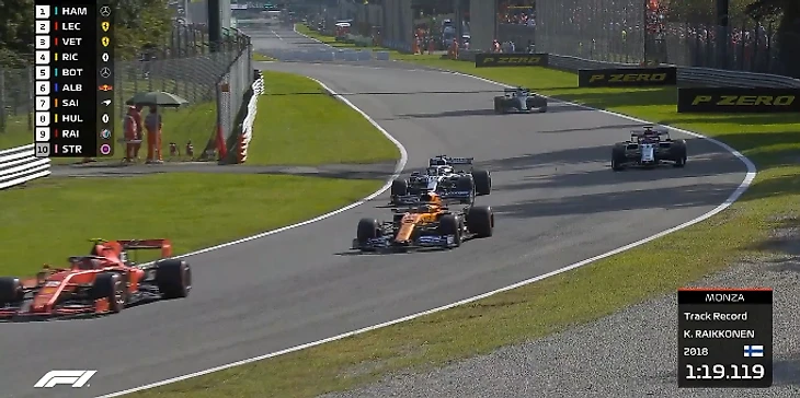 Из-за специальных аэрообвесов и характера трека в Монце всегда чудовищно эффективно работал слипстрим (аэродинамический след от болида, снижающий лобовое сопротивление и тем самым повышающий скорость), а также крыло DRS. Разность в 6 км/ч позволяет снимать 0,2 секунды, а при современной заточке под скорость пилот, умно спрятавшийся за соперника, может привезти конкурентам даже 0,5-0,6 секунды с круга!