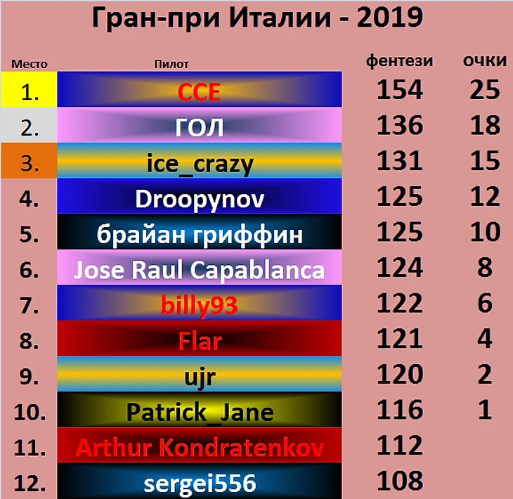 Fantasy Формула 1 - 2019 Гран - при Италии