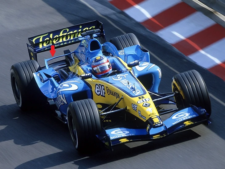 Это еще одна популярная фишка. Она была также у «БАРа» и «Уильямса». У первых, правда, плоскость мини-крыла была больше. «Рено» же сделали его немного другим. Более тонкое крыло французского болида все же выполняло ту же функцию: направляло поток воздуха под плоскости заднего крыла.