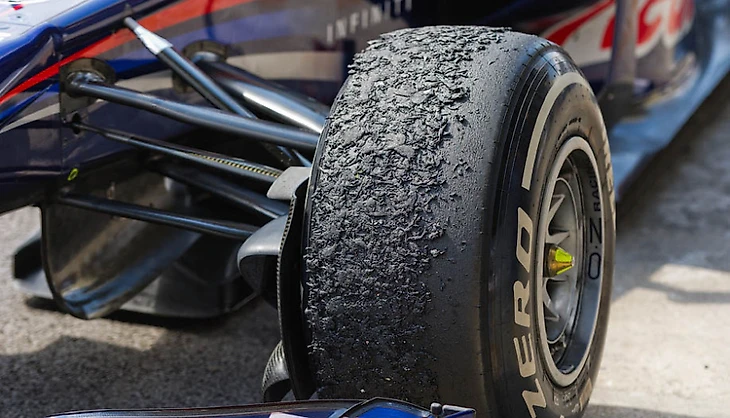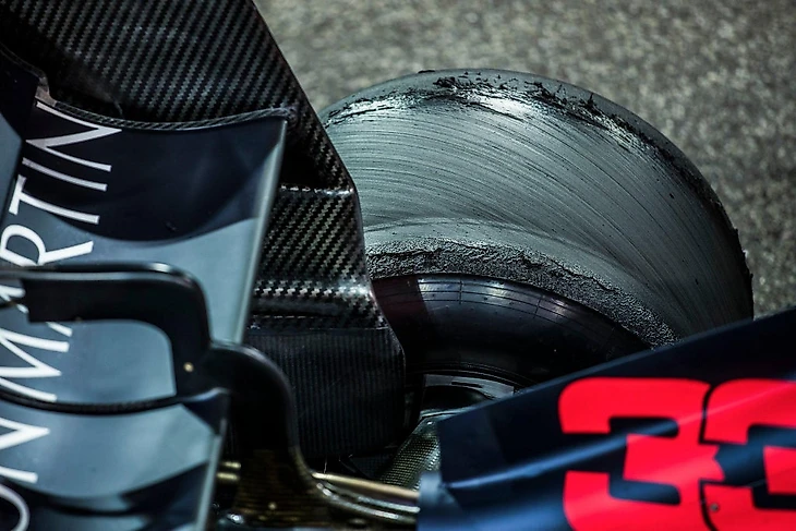 В «Формуле-1» редко появляется шанс взглянуть на реальное состояние резины после финиша Гран-при, поскольку все пилоты на круге возвращения в боксы стараются проехать по грязным частям трека и собрать на колеса резиновых «червячков», отлетающих от покрышек в процессе износа.