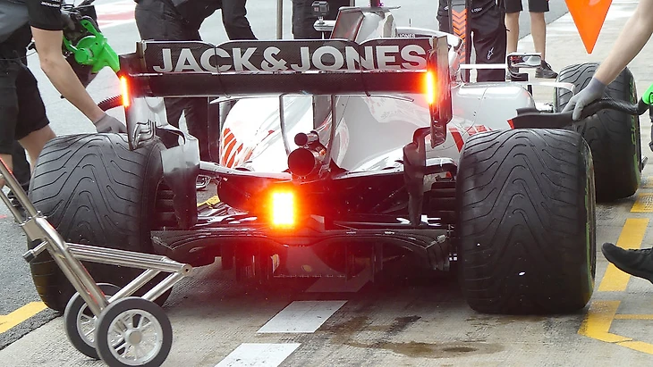 «Хаас» – клиент итальянцев и закупает оба комплекта подвесок в Маранелло. Так что у серой машины все в точности так же – и спереди.