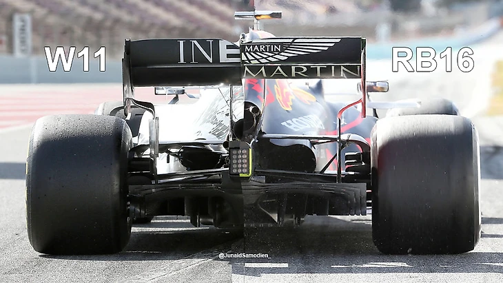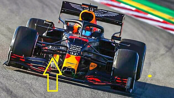 У «Ред Булл» же впереди максимально поднялся только нижний пилон, освободив дорогу к дефлектору для воздушного потока. Верхний пилон не улетел в космос.