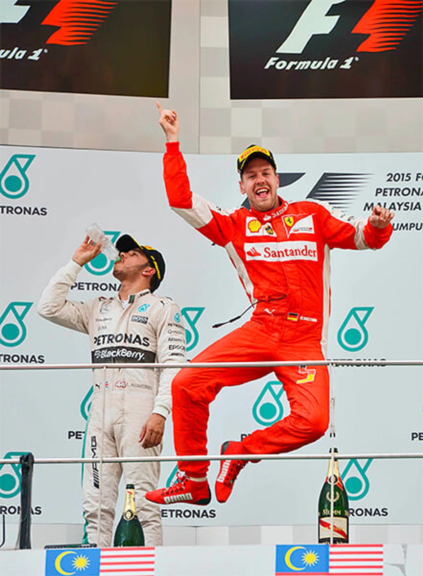 Только послушайте, какую бурю эмоций в нем вызвала победа на Гран-при Малайзии 2015-го – первая в составе итальянской команды.