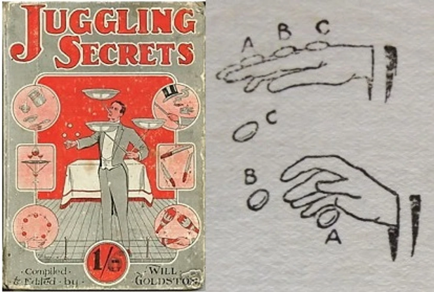 Но сам трюк еще старше: в книге «Секреты жонглирования» 1911 года уже объясняли технику ловли. Правда, трех монет – но порядок действий не меняется.