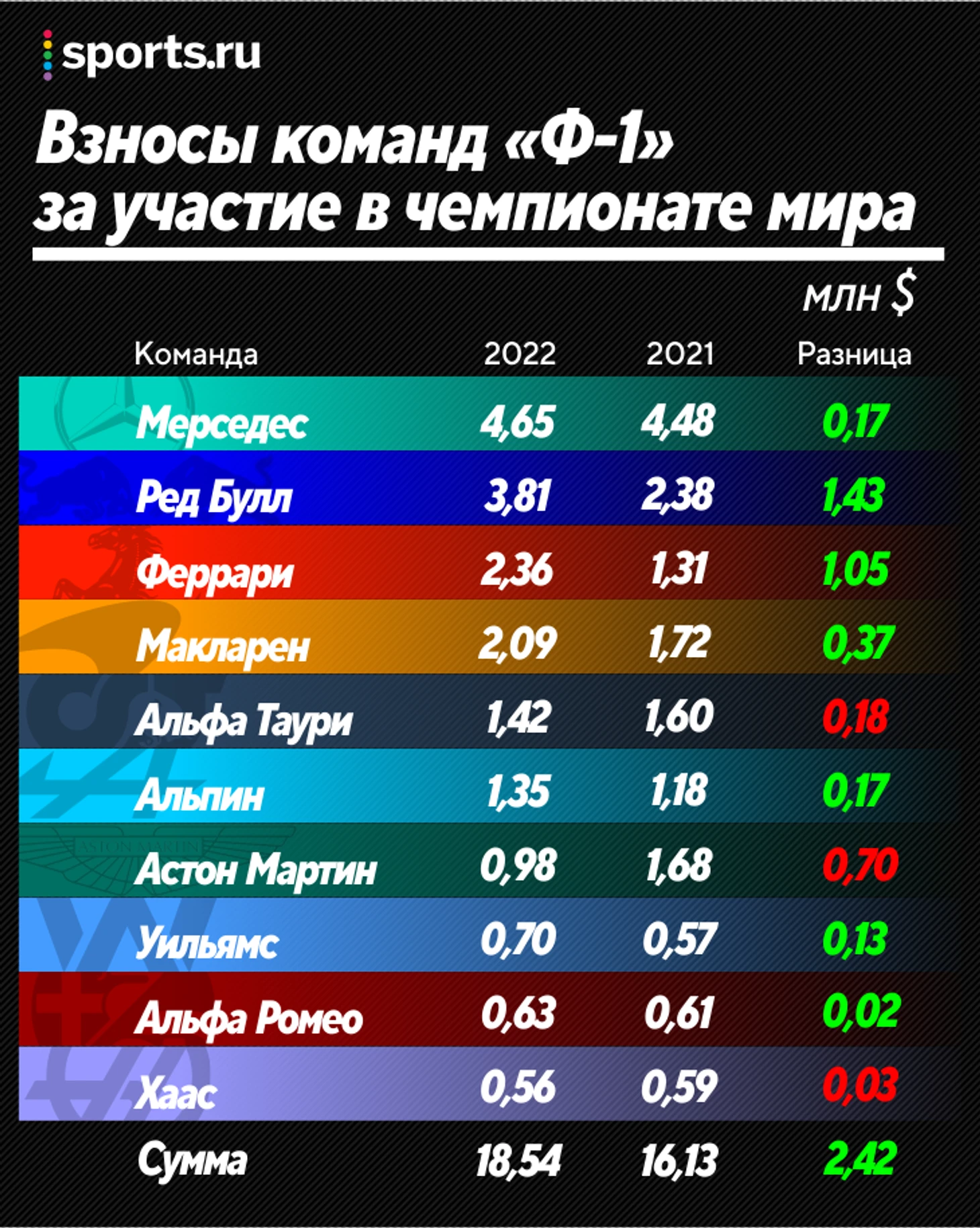 Откуда такая разница? Просто в предыдущем сезоне взносы делали за сокращенный коронавирусный 2020-й с 17 Гран-при. В 2021-м в календарь вместили уже 22 этапа – а чем больше гонок, тем больше очков и взносов впоследствии.
