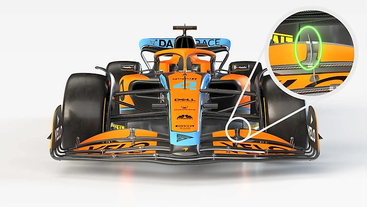 «Макларен», возможно, полагается на это давление в боковой стойке для управления турбулентным воздухом от колес в середине, а затем использует резко наклоненную внутрь часть боковых понтонов для агрессивного управления нижним потоком. Это совсем другая стратегия, чем у «Астона».