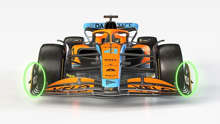 Таким образом, внешние части днища низкие. Воздушные каналы большие, поэтому плоский и низкий ход автомобиля максимально усиливает граунд-эффект. При плоской компоновке переднее крыло располагается очень высоко, что снижает его мощность. Однако некоторые команды все же могут выбрать вариант с небольшим креном, как это делает «Макларен», и это поможет немного увеличить мощность переднего крыла и позволит им уменьшить его форму.