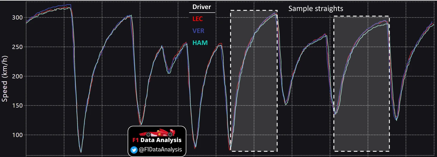 Да, на прямых внезапно лучше всех выстрелил «Уильямс» (по слухам из паддока, из-за общей нехватки прижимной силы у английской машины почти нет лобового сопротивления), на втором месте – «Ред Булл», «Феррари» – третья. «Мерседес» же – предпоследний и проигрывает только Скудерии около 0,3 секунды.