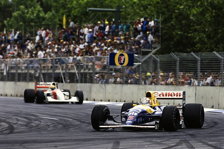 Лидирующие Мэнселл и Сенна сталкиваются с друг другом