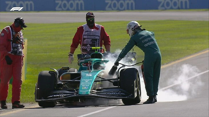 А Феттель за свой первый гоночный уик-энд после ковида провел больше времени верхом на скутере, чем за рулем. К примеру, в первой тренировке его машина сгорела.
