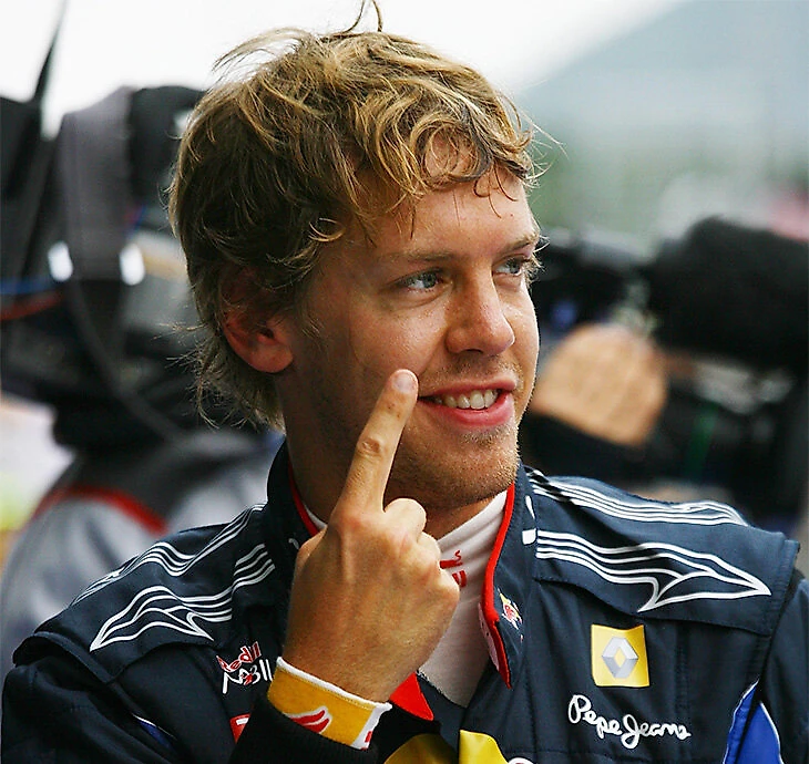 Эволюция образа Феттеля в «Ф-1»: отращивал волосы, ужасал лысиной, переставал бриться, но неизменно показывал палец после побед