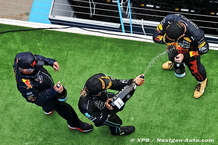 Рассел показал отличное боевое настроение на протяжении 70 кругов. Наградой стал пятый подиум в сезоне. Хэмилтон обеспечил себе пятый подиум подряд. Это был болезненный день для «Феррари», так как Карлос Сайнс также не смог финишировать в тройке лидеров. Испанец финишировал четвертым. «Феррари», вероятно, может поцеловать чемпионат мира на прощание. «Ред Булл» и Ферстаппен слишком сильны. А итальянцы допускают слишком много ошибок.