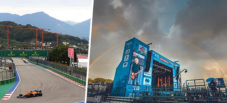 Фото: Gettyimages.ru/Peter Fox, Mark Thompson, Yuri Kochetkov – Pool, Rudy Carezzevoli, Bryn Lennon; @sochiautodrom, VK/festivaln1