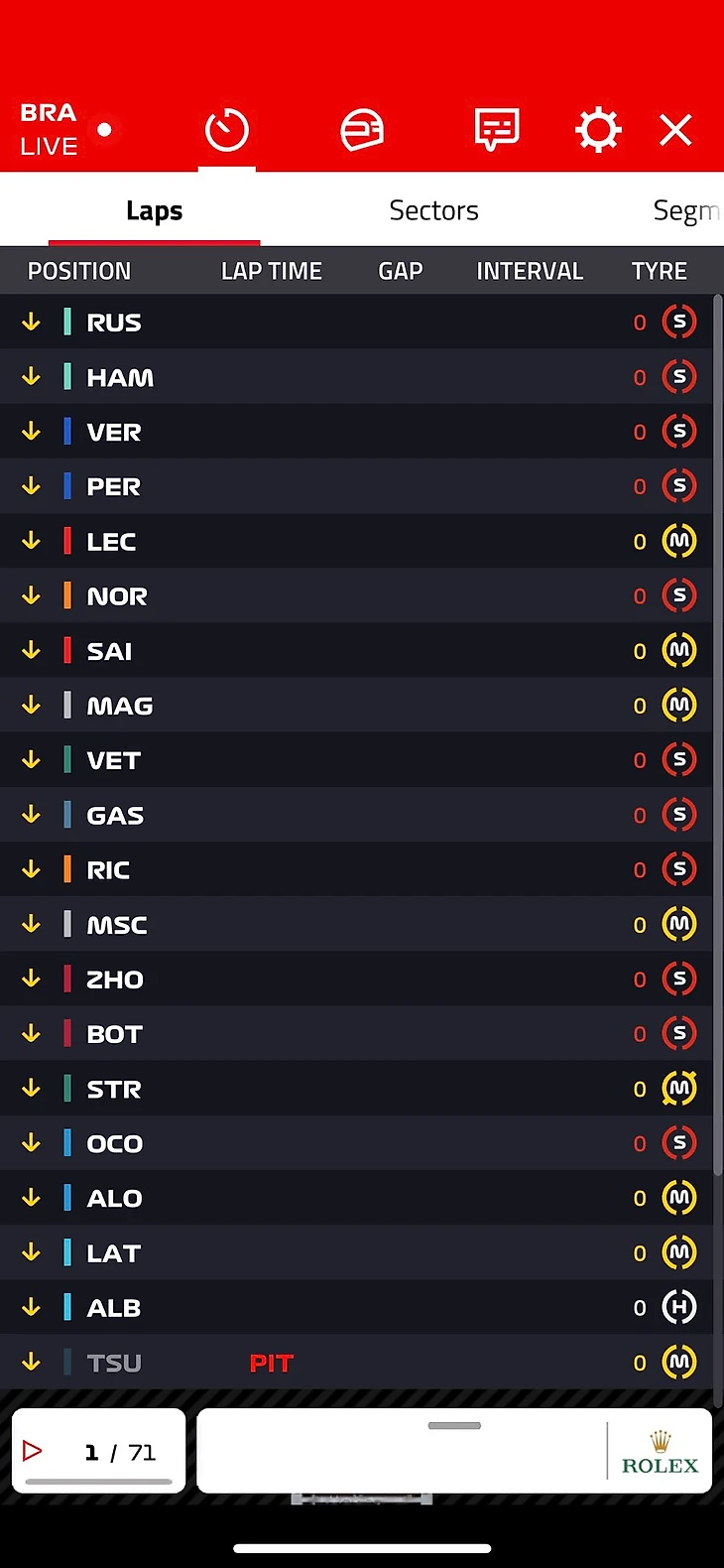 Серхио попал в трафик из Боттаса и Норриса и не смог «подрезать» «Мерседес» – чемпионы тут же ответили остановкой Расселла, и Джордж выехал на 25-м круге 2-м. Хэмилтон внезапно оказался лидером после отката на дно топ-10.