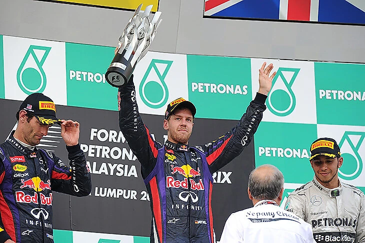 Победить удалось лишь в третьей гонке в Малайзии, но с этого момента начались трения с напарником. Уэббер, тоже мечтавший о титуле, не был готов мириться с тем, что команда видит своим первым чемпионом молодого немца, а потому не собирался просто так пропускать Себастьяна вперед.