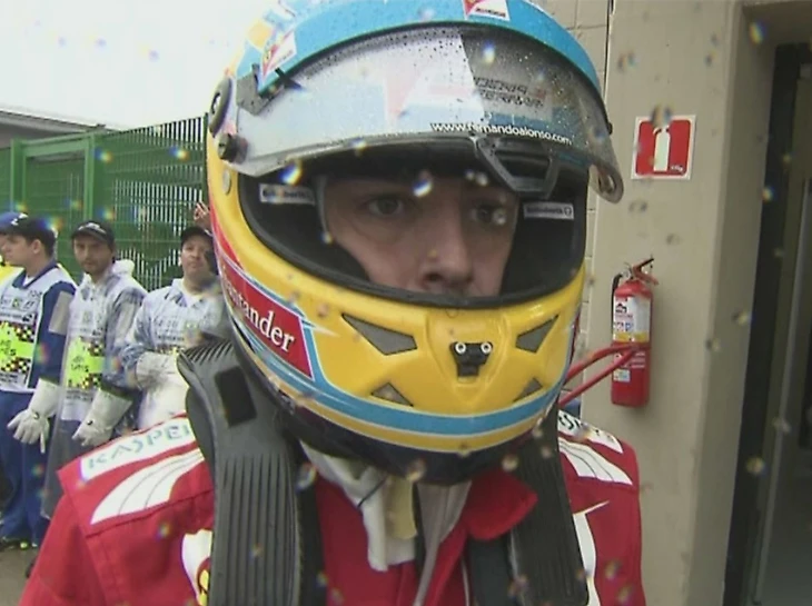 Феттель взял третий титул, а Алонсо навсегда запомнился фанатам вот этим взглядом после завершения заезда – как мы знаем сегодня, это был его последний бой за звание чемпиона мира.